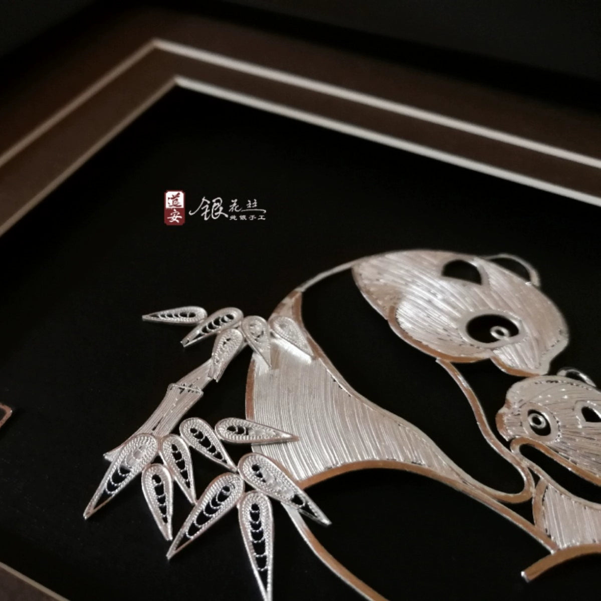 This mother and son panda silver silk painting ornament is a masterpiece of the Chengdu Dao'an silver...