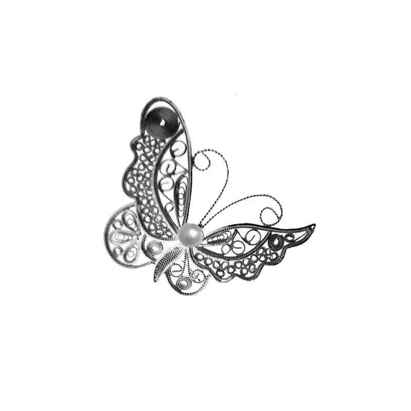 Handmade Butterfly Brooch with Natural Freshwater Pearl - Dao'an Silver Filament Court Filament, Intangible Cultural Heritage Collection