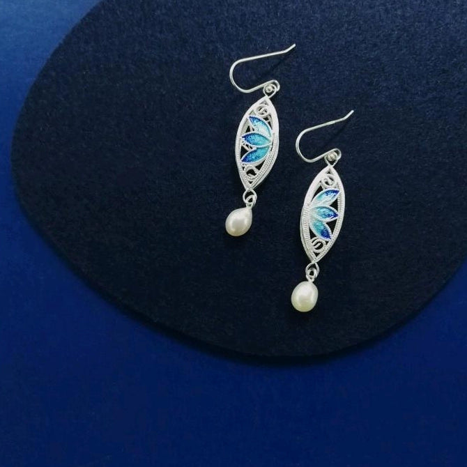 These exquisite handmade sterling silver double-sided lotus high temperature enamel earrings are crafted with the traditional Daoan silver filigree technique, a national intangible cultural heritage in China with a history of over 1700 years. The Daoan silver filigree is renowned for its "flat filling" technique. Artisans draw high-purity silver into thin threads and use skills like filling, stacking, threading and twisting to create the delicate lotus shape. The high-temperature enamel process endows the lotus with bright colors, making it vivid and eye-catching. Each petal and every detail of the lotus show the perfect combination of traditional craftsmanship and modern aesthetics. These earrings are not only a symbol of elegance and taste suitable for various occasions such as banquets and parties, but also a carrier of inheriting traditional culture, presenting the unique charm of Chinese traditional silver filigree art.