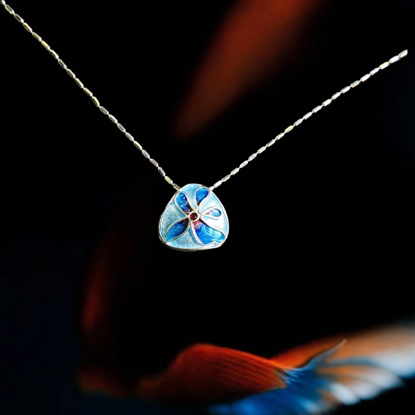 Handmade Geometric Triangle Orchid Enamel 3D Double-sided Necklace - Dao'an Silver Silk, Intangible Cultural Heritage Art