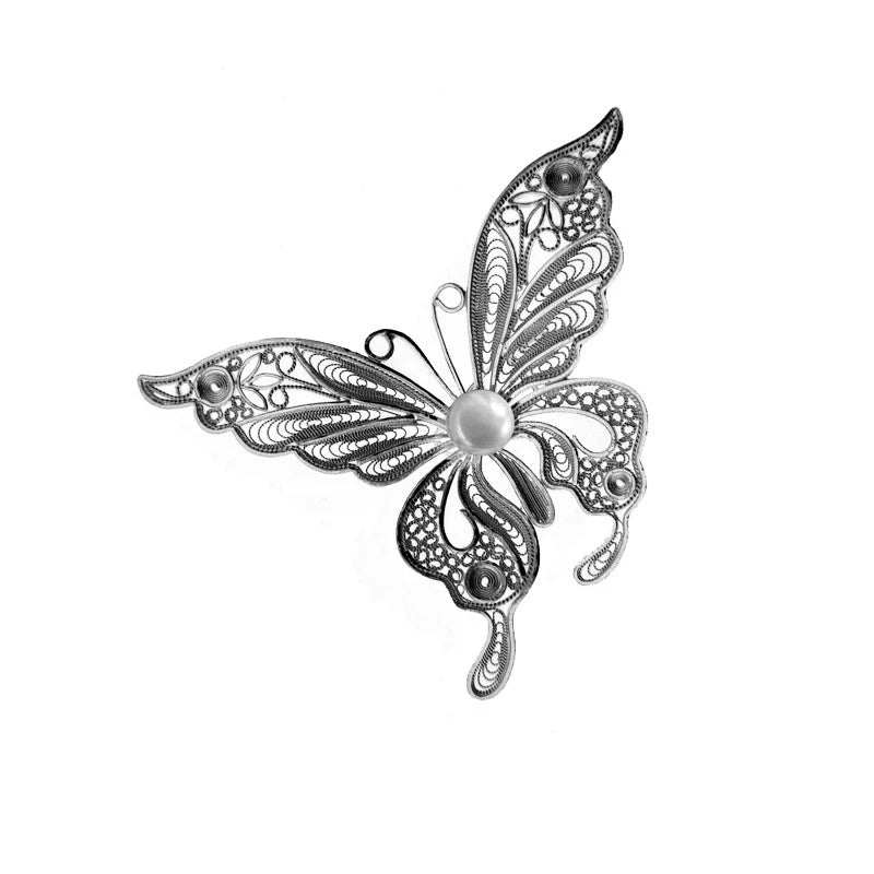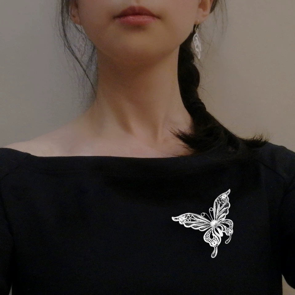 A natural freshwater pearl is then inlaid, adding a touch of elegance and luxury. The pearl's soft luster complements the intricate silver filigree perfectly. The dual - purpose design allows it to be worn as a brooch to adorn a lapel or as a pendant on a necklace, offering versatility in styling.