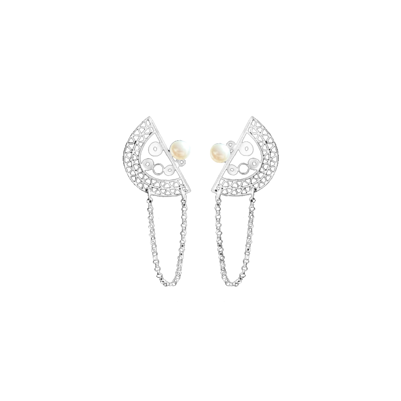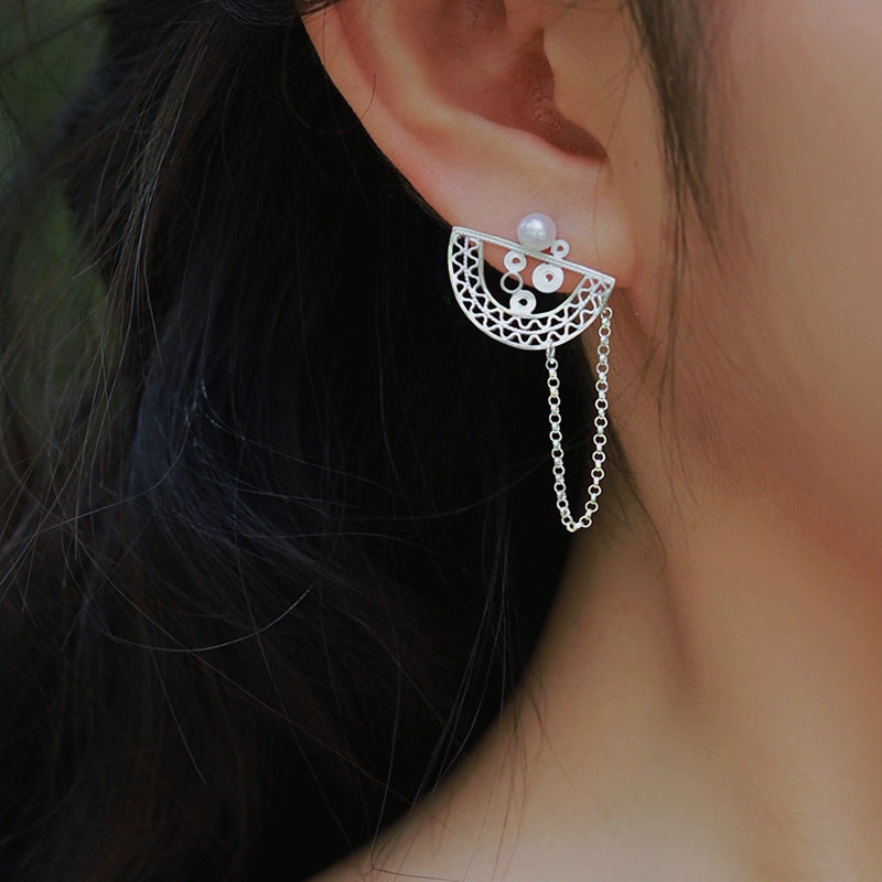 Skilled artisans carefully craft the silver into the shape of a folding fan, with each detail meticulously rendered. The addition of fringes not only enhances the visual appeal but also gives the earrings a sense of movement and fluidity. As stud earrings, they are comfortable to wear and suitable for various occasions, whether it's a casual day out or a special event like the Qixi Festival.