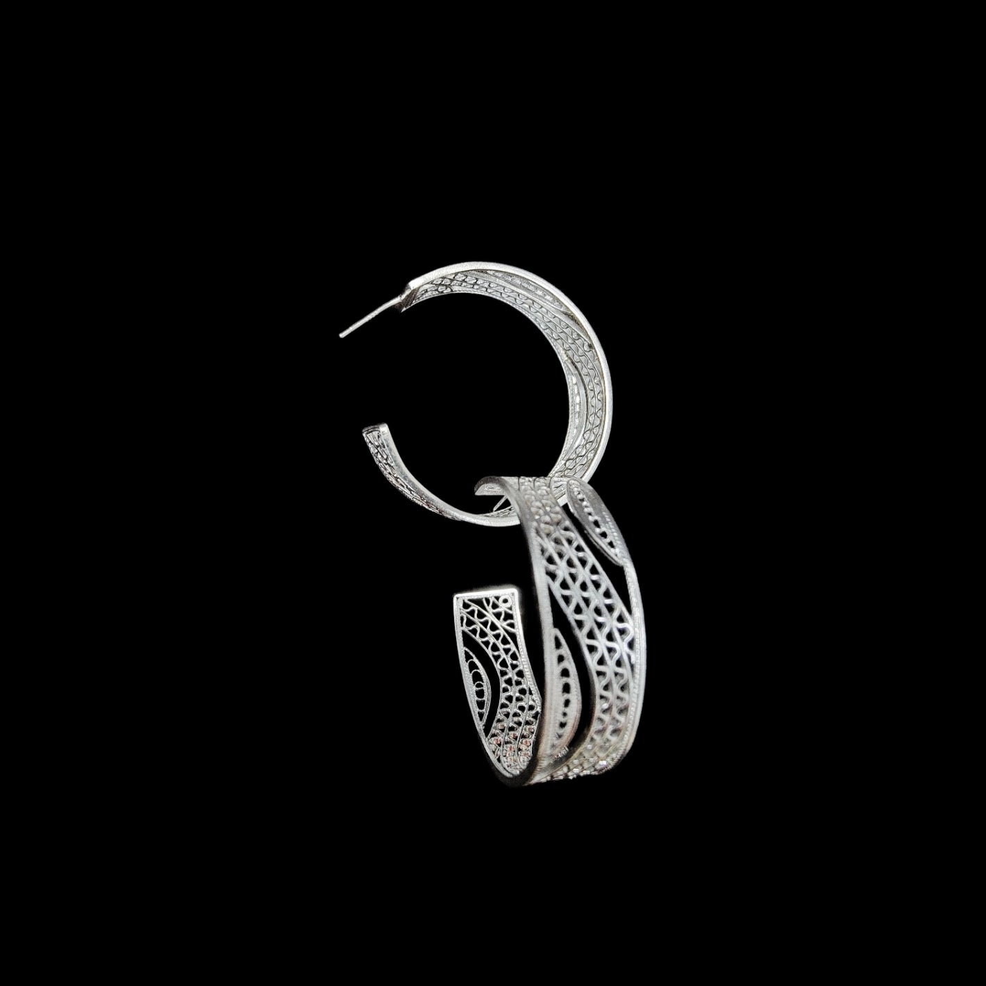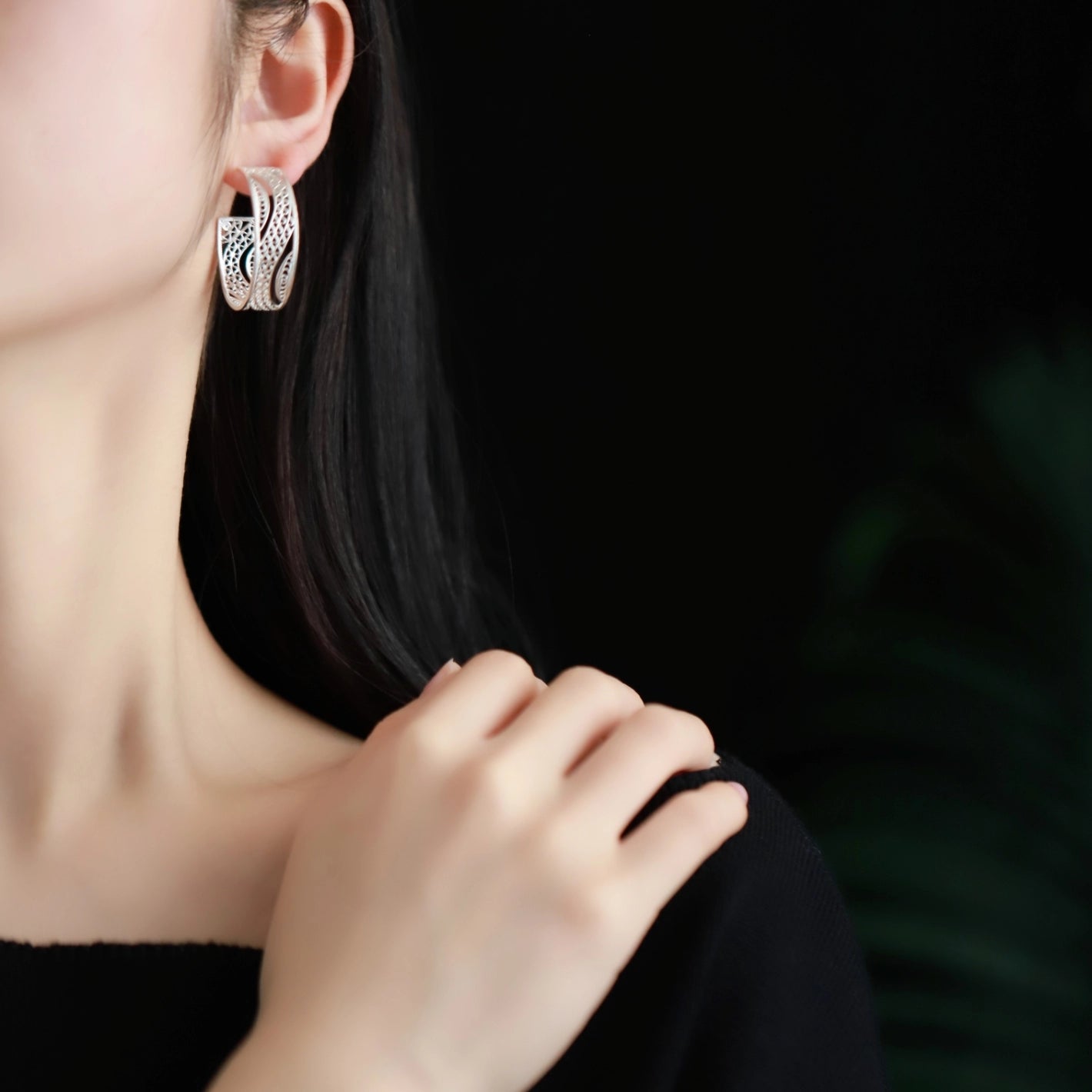 These handmade sterling silver running water earrings are a unique creation that combines the charm of intangible cultural heritage with original design. Rooted in traditional craftsmanship, they carry forward the essence of time - honored techniques. Skilled artisans meticulously shape the silver into a flowing water - like form, creating a sense of dynamic beauty. The niche design sense gives these earrings an exclusive and distinctive look. They are not just an accessory but a statement piece. The premium light - luxury feel, with their exaggerated yet tasteful design, makes them suitable for special occasions like fashion shows, parties, or high - end events. They can enhance the wearer's style, showing off both modern fashion and the rich heritage of traditional Chinese art.