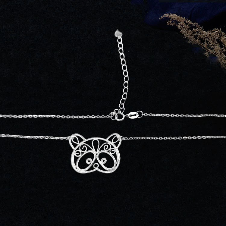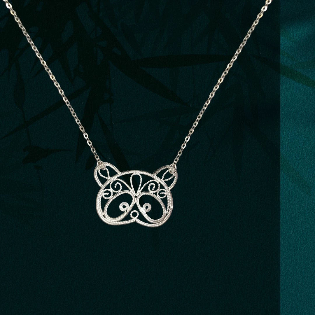 Handmade Guochao Panda Collarbone Chain Necklace Set - Sichuan's Chengdu Silver Silk Filigree Intangible Cultural Heritage Gift